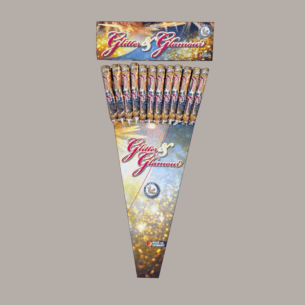 n n12 Stab-Raketen mit Blitzlichtern und kraftvollen Effekten in Rot, Grün, Blau und Lila.nDer Artikel enthält eine Tragehülse. n n Lesli Vuurwerk Glitter & Glamour Goedkoop vuurwerk kopen bij Vuurwerkwinkel Delft
