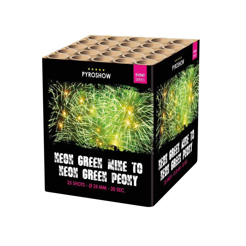 Neon Green Peony w.Green Tail & Mine Goedkoop vuurwerk kopen bij Vuurwerkwinkel Delft